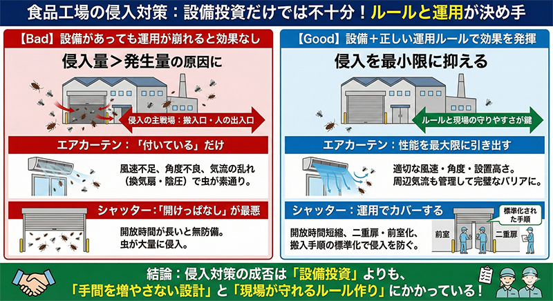 侵入を減らすための動線設計:搬入口・エアカーテン・シャッター運用